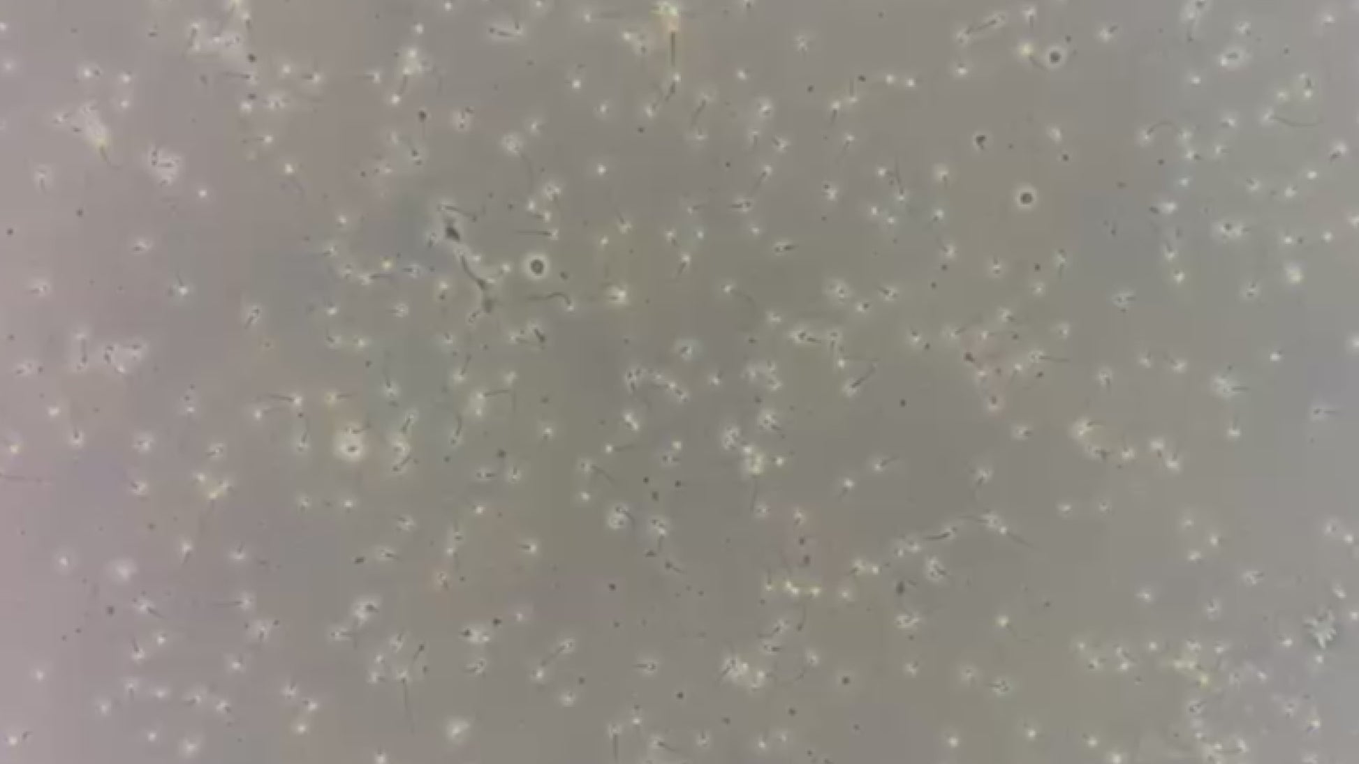 A través del microscopio, puedes observar que los espermatozoides mantienen su movilidad tras el proceso de preservación, lo que indica una excelente calidad postdescongelación.